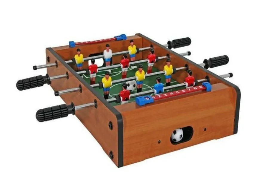 Este juego de mesa portátil y compacto es perfecto para entretener a niños, amigos y familiares. Es ideal para dos personas. Cuenta con una estructura de madera y barras de acero resistentes. Cada barra tiene capacidad para tres jugadores, y el lateral de la mesa cuenta con un sistema de puntuación.